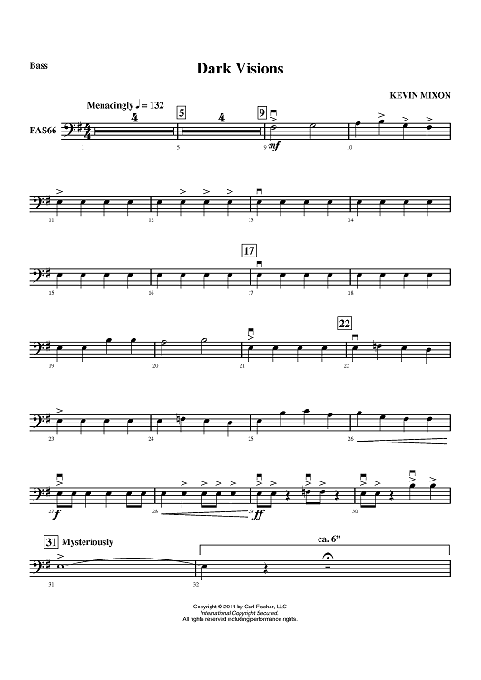 "Dark Visions - Bass" Sheet Music by Kevin Mixon