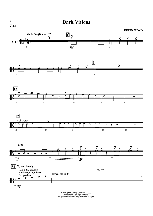 "Dark Visions - Viola" Sheet Music by Kevin Mixon