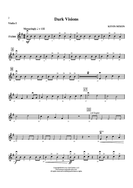 "Dark Visions - Violin 1" Sheet Music by Kevin Mixon