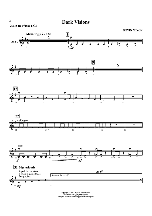 "Dark Visions - Violin 3 (Viola T.C.)" Sheet Music by Kevin Mixon