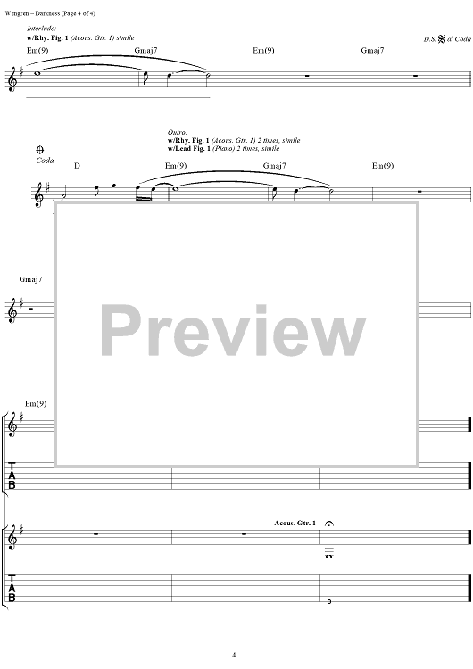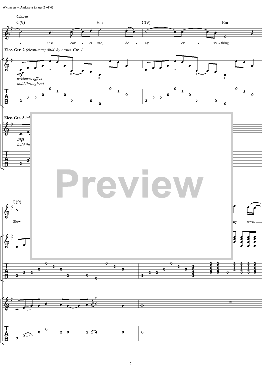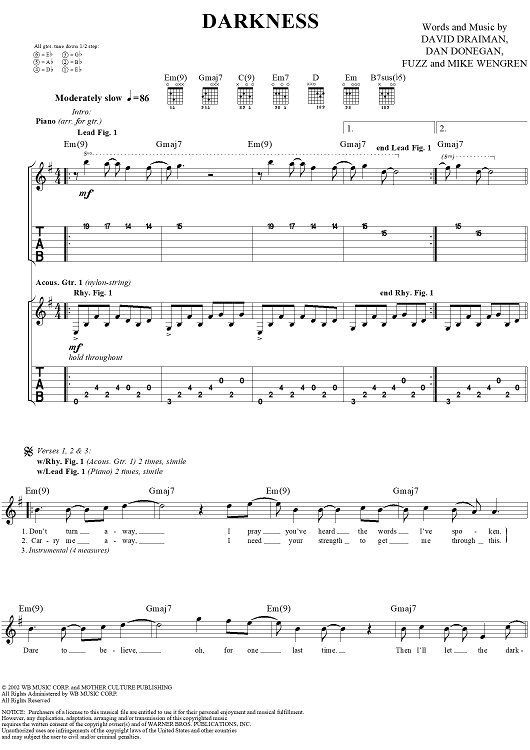 Digital Sheet Music for Darkness by Disturbed, Mike Wengren, Dan Donegan, Fuzz, David Draiman scored for Guitar Tab/Vocal; id:294085