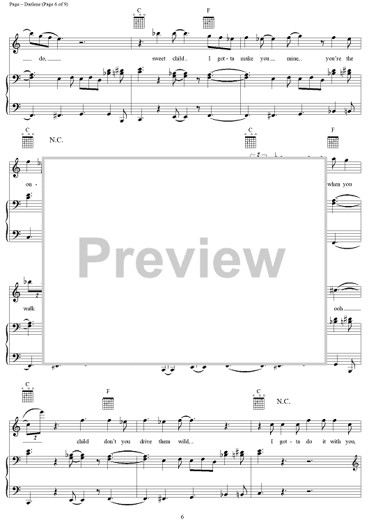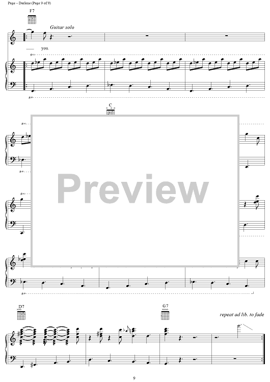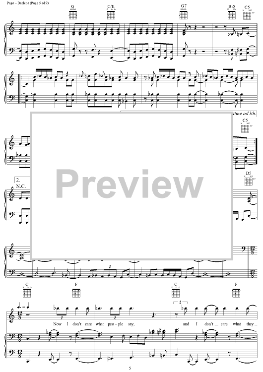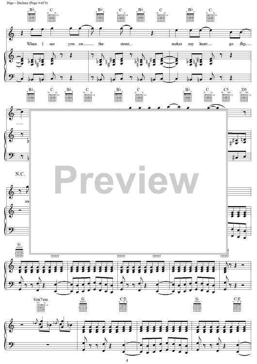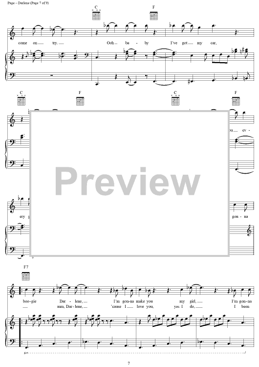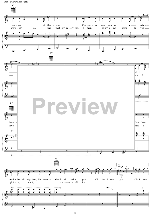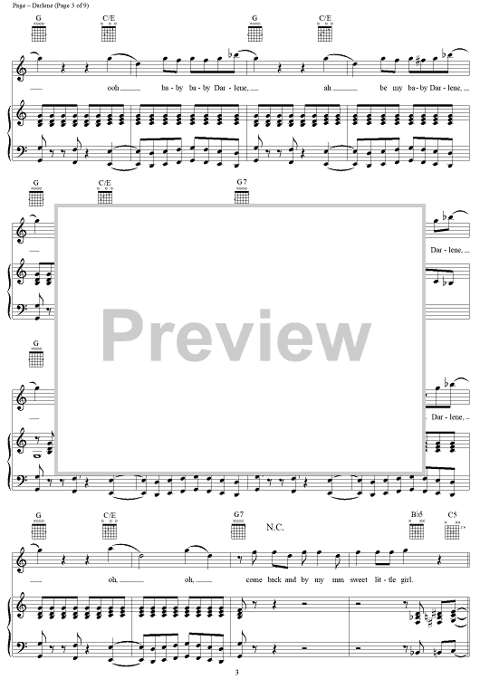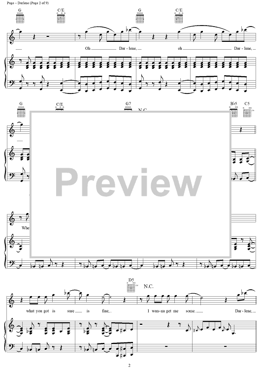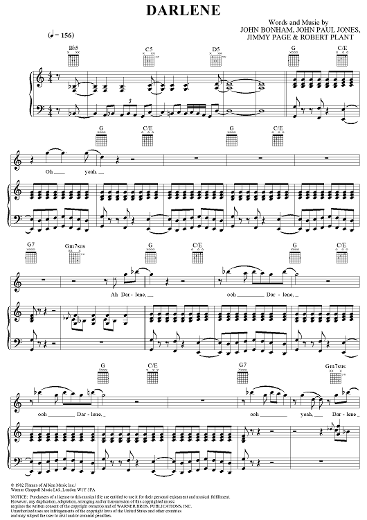 Digital Sheet Music for Darlene by Jimmy Page, John Paul Jones, John Bonham, Led Zeppelin, Robert Plant scored for Piano/Vocal/Chords; id:119810