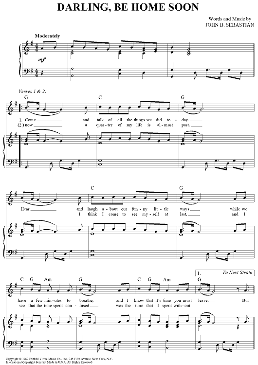 "Darling, Be Home Soon" Sheet Music by The Lovin' Spoonful