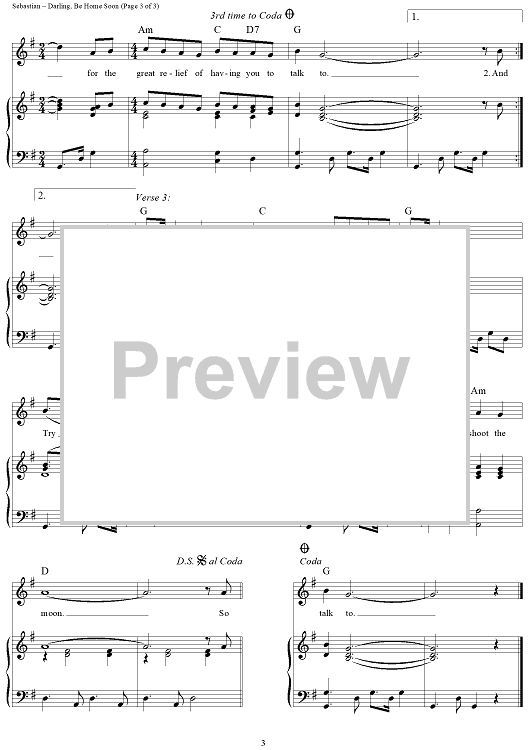 Digital Sheet Music for Darling, Be Home Soon by John Sebastian, The Lovin' Spoonful scored for Piano/Vocal/Chords; id:365308
