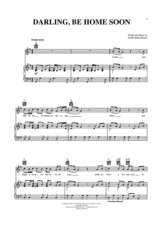 Digital Sheet Music for Darling, Be Home Soon by Joe Cocker, Bobby Darin, John Sebastian, The Lovin' Spoonful scored for Piano/Vocal/Chords; id:388860