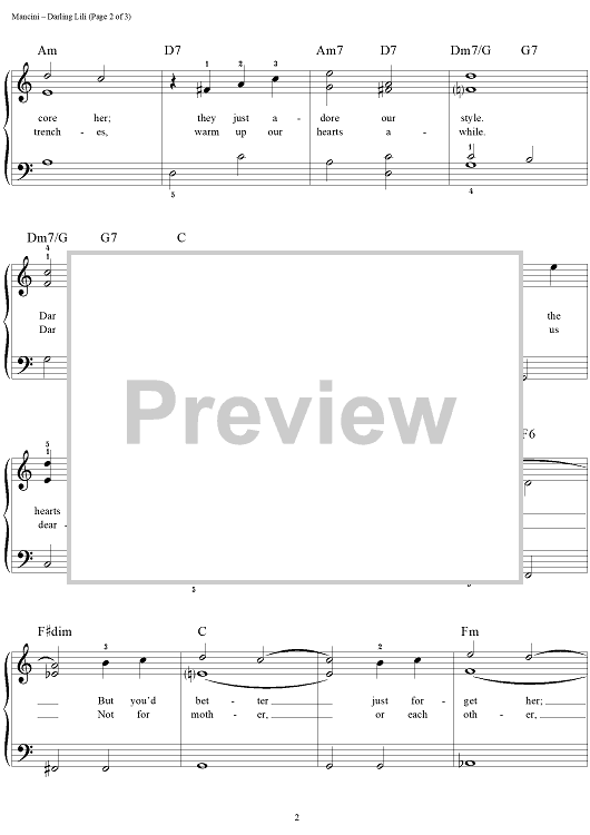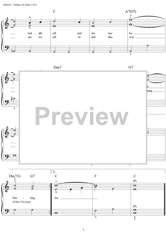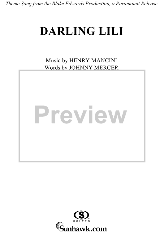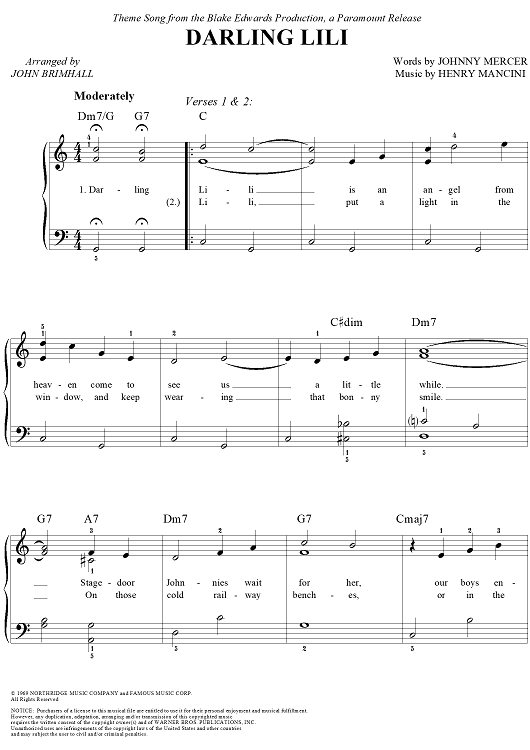 Digital Sheet Music for Darling Lili by Henry Mancini, Johnny Mercer, John Brimhall scored for Easy Piano/Vocal; id:251389