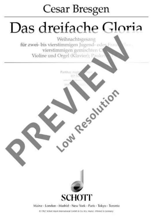 Digital Sheet Music for Das dreifache Gloria - Score by Cesar Bresgen scored for Children's Choir Or Female Choir (ssaa), Mixed Choir (satb), Violin And Organ; Timpani Ad Libitum; id:473466
