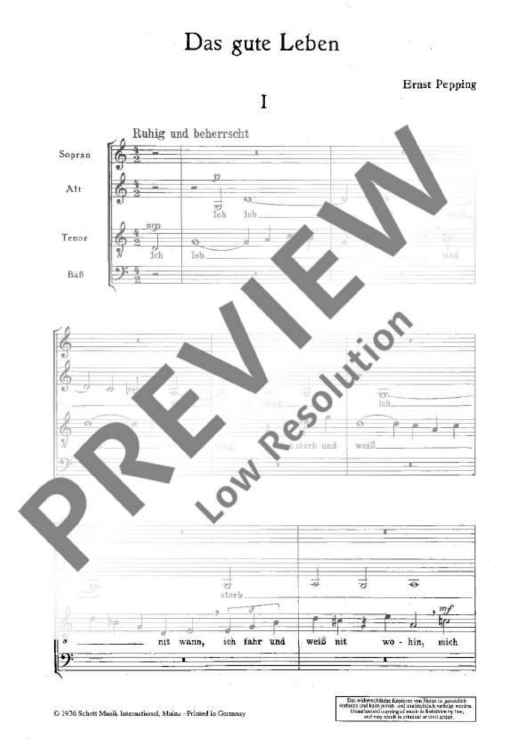 Digital Sheet Music for Das gute Leben - Choral Score by Ernst Pepping scored for Mixed Choir (satb); id:479388