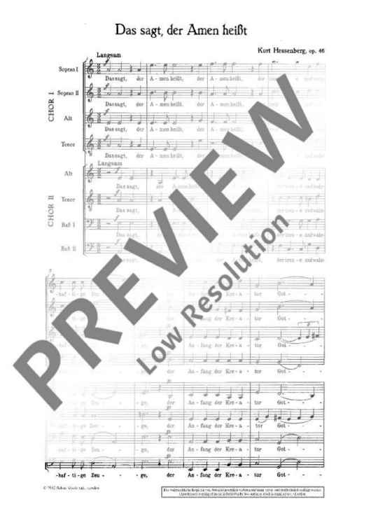 "Das sagt, der Amen heißt - Score" Sheet Music by Kurt Hessenberg