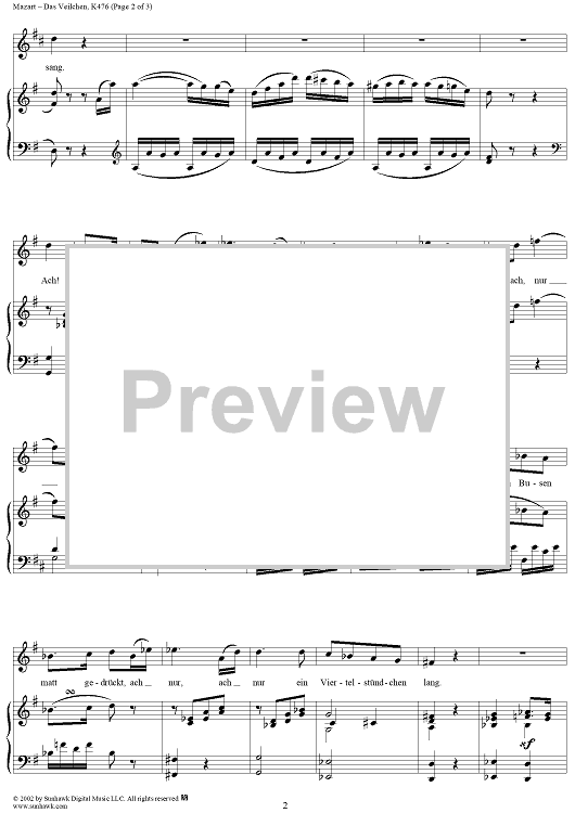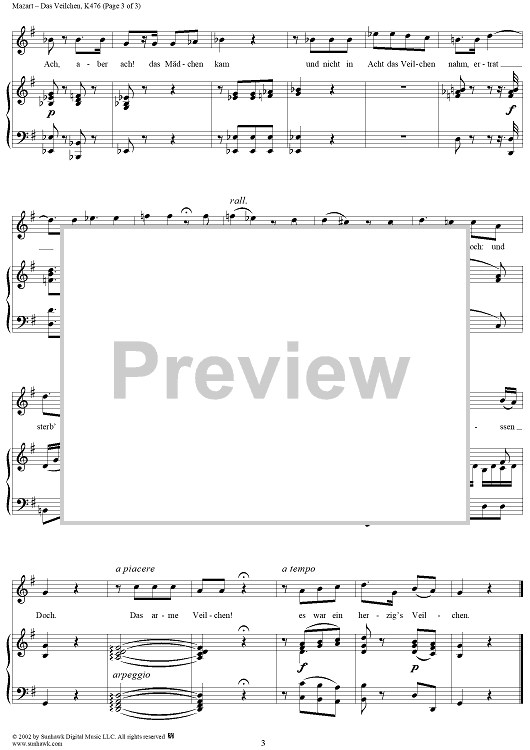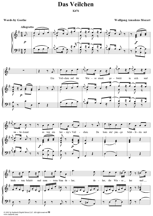 Digital Sheet Music for Das Veilchen: "Ein Veilchen auf der Wiese stand", K476 by Wolfgang Amadeus Mozart, Johann Wolfgang von Goethe scored for Voice/Piano; id:291337
