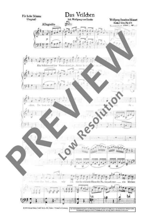 Digital Sheet Music for Das Veilchen by Wolfgang Amadeus Mozart scored for High Voice And Piano; id:474724