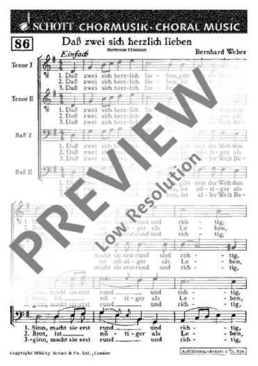 Digital Sheet Music for Dass zwei sich herzlich lieben - Choral Score by Bernhard Weber scored for Men's Choir; id:479744