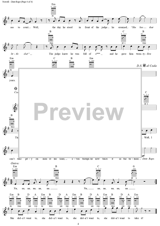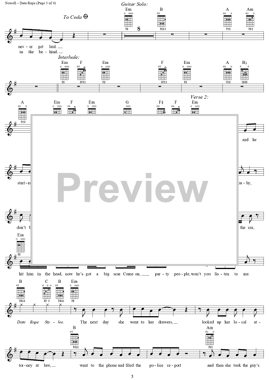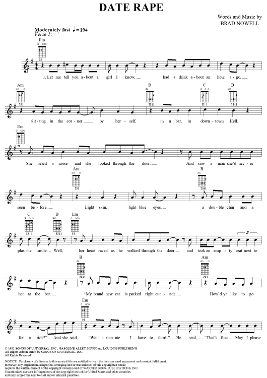 Digital Sheet Music for Date Rape by Sublime, Brad Nowell scored for Easy Guitar/Vocal; id:289687