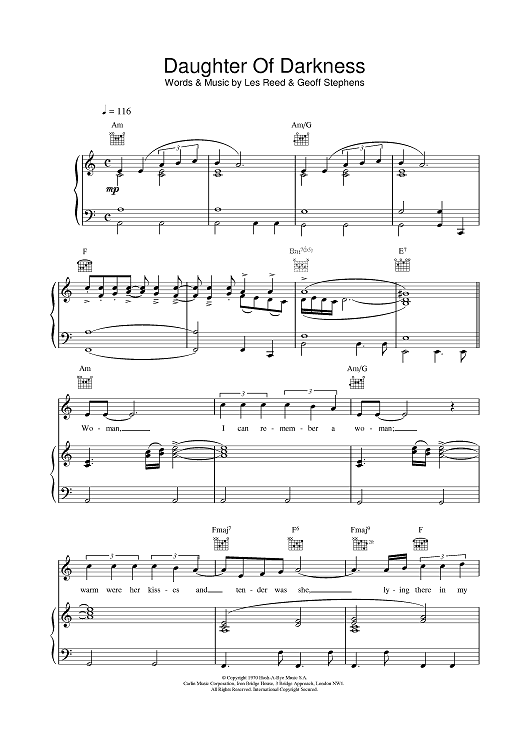 Digital Sheet Music for Daughter Of Darkness by Tom Jones scored for Piano/Vocal/Chords; id:376595