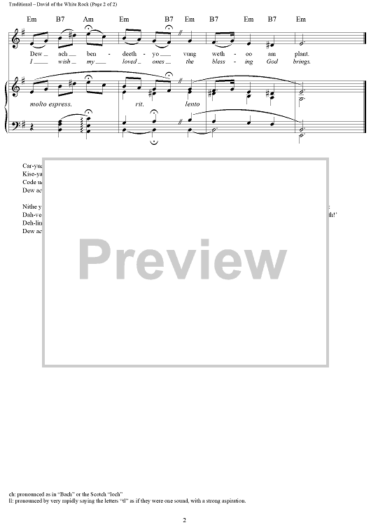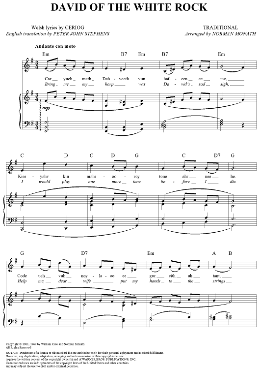 Digital Sheet Music for David of the White Rock by John Ceiriog Hughes, Norman Monath, Traditional scored for Piano/Vocal/Chords; id:260550
