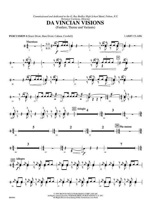 Digital Sheet Music for DaVincian Visions - Percussion 1 by Larry Clark scored for Concert Band; id:310252