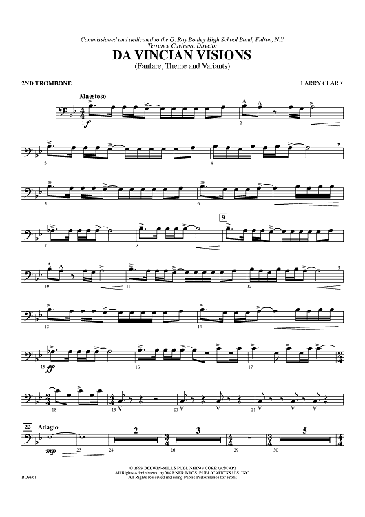 Digital Sheet Music for DaVincian Visions - Trombone 2 by Larry Clark scored for Concert Band; id:310245