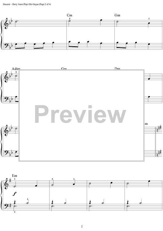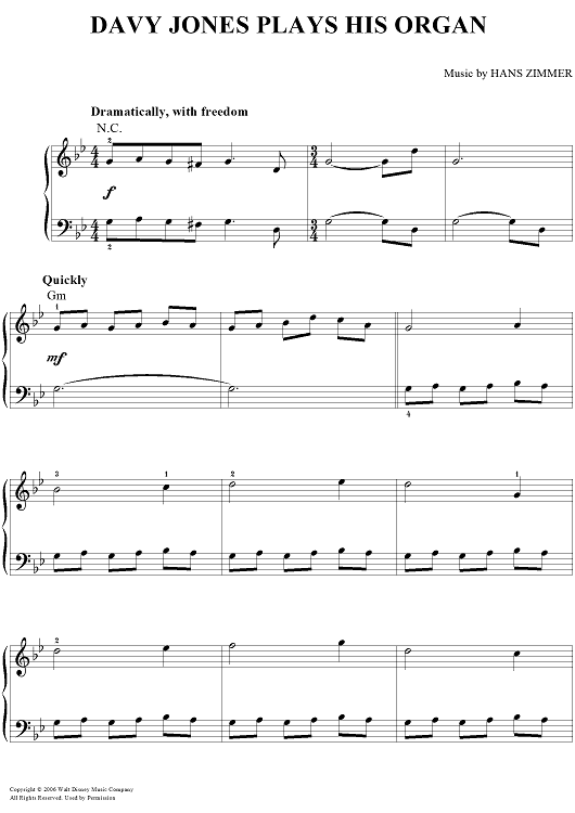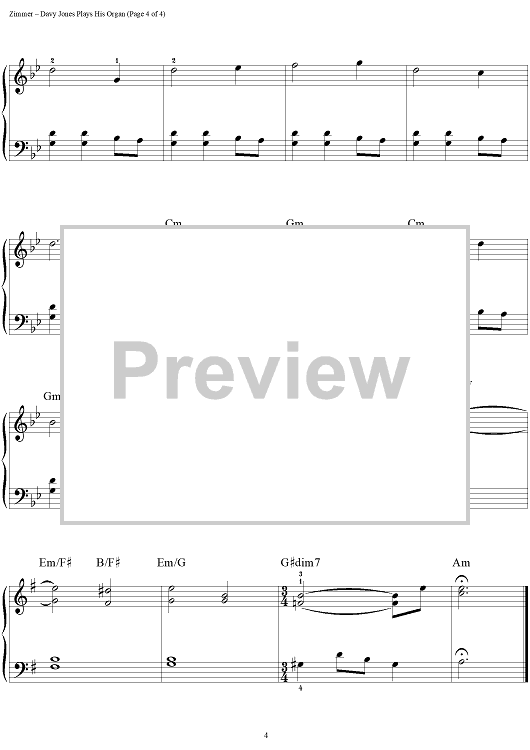 Digital Sheet Music for Davy Jones Plays His Organ by Hans Zimmer scored for Easy Piano/Chords; id:395464