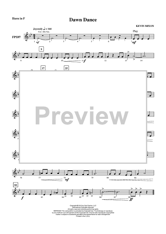 "Dawn Dance - Horn in F" Sheet Music by Kevin Mixon