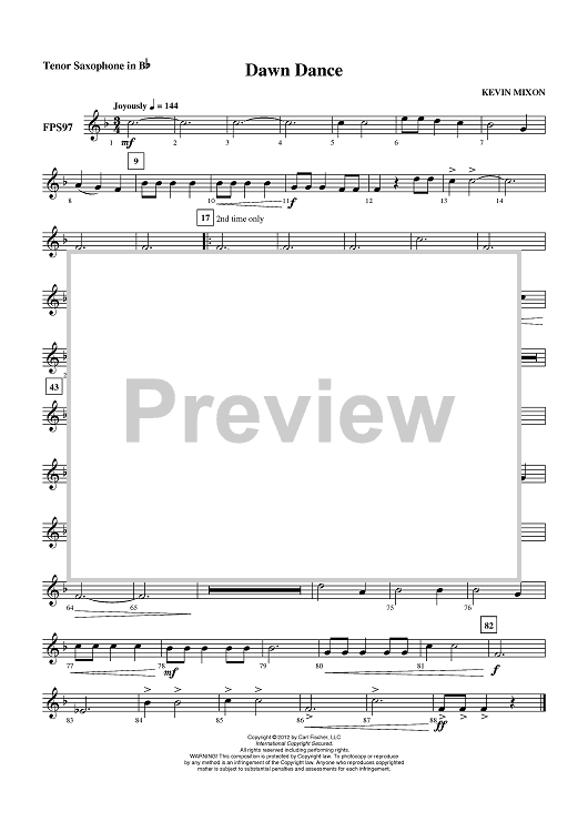 "Dawn Dance - Tenor Sax" Sheet Music by Kevin Mixon