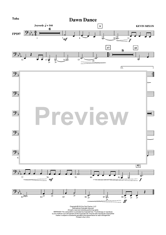 Digital Sheet Music for Dawn Dance - Tuba by Kevin Mixon scored for Concert Band; id:430932