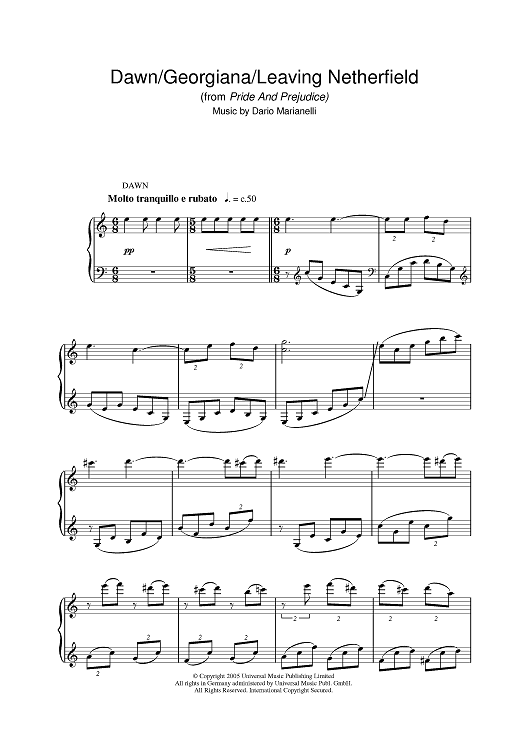 "Dawn/Georgiana/Leaving Netherfield (from Pride And Prejudice)" Sheet Music by Dario Marianelli