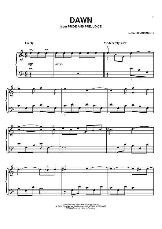 Digital Sheet Music for Dawn by Dario Marianelli scored for Easy Piano; id:390996