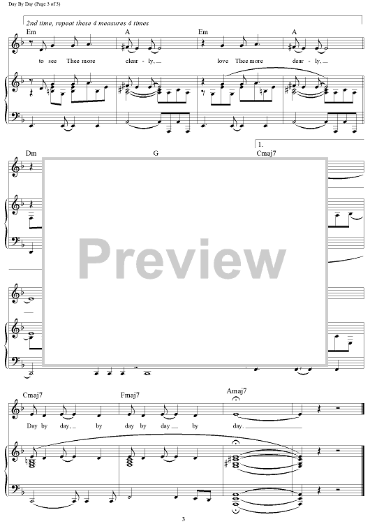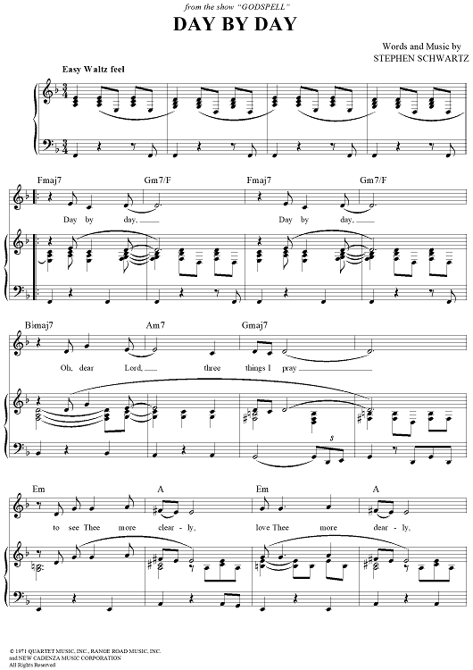 Digital Sheet Music for Day By Day by Stephen Schwartz scored for Piano/Vocal/Chords; id:120443