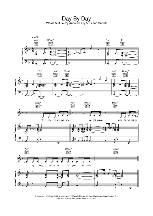 Digital Sheet Music for Day By Day by Siedah Garrett, Brand New Heavies, Andrew Levy scored for Piano/Vocal/Chords; id:376494