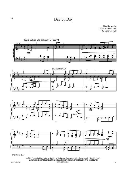 Digital Sheet Music for Day by Day by Oscar Ahnfelt, Bob Burroughs scored for Piano Solo; id:433985