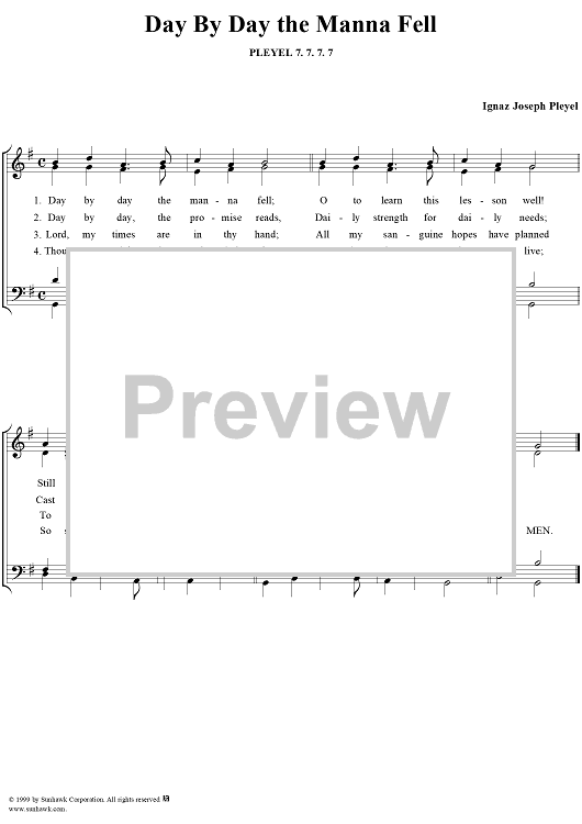 Digital Sheet Music for Day By Day the Manna Fell by Ignace Joseph Pleyel scored for Four-part Mixed Chorus; id:254684