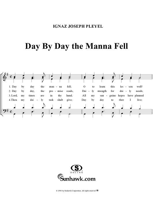 "Day By Day the Manna Fell" Sheet Music by Ignace Joseph Pleyel