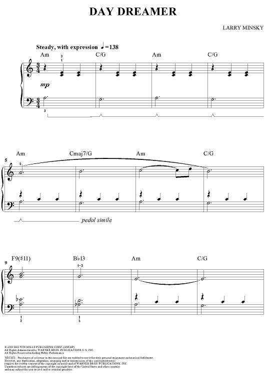 Digital Sheet Music for Day Dreamer by Larry Minsky scored for Easy Piano; id:316058