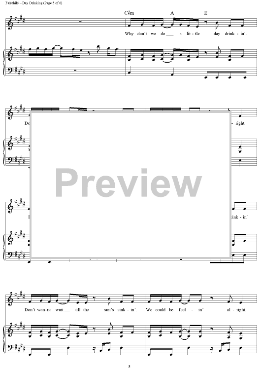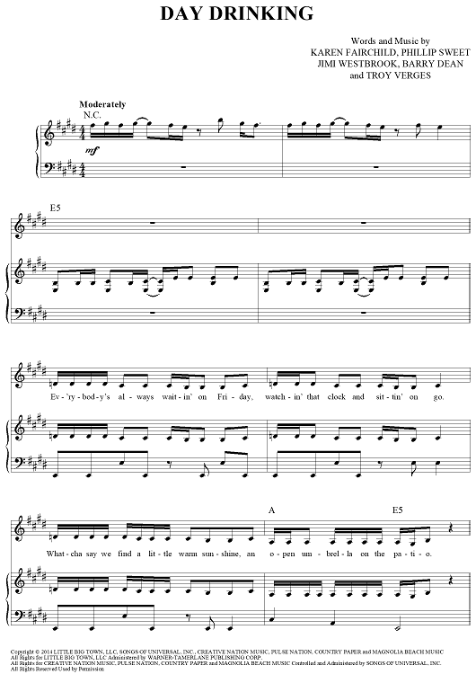Digital Sheet Music for Day Drinking by Troy Verges, Little Big Town, Barry Dean, Karen Fairchild, Phillip Sweet, Jimi Westbrook scored for Piano/Vocal/Chords; id:444697