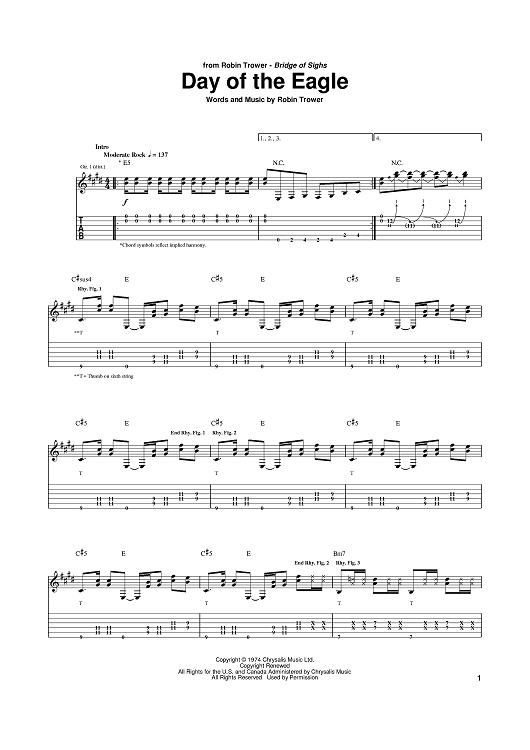 Digital Sheet Music for Day Of The Eagle by Robin Trower scored for Guitar Tab; id:375427