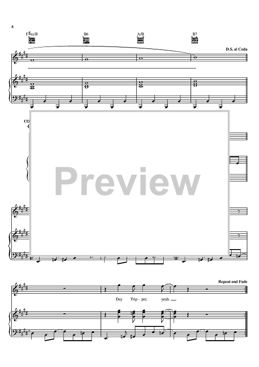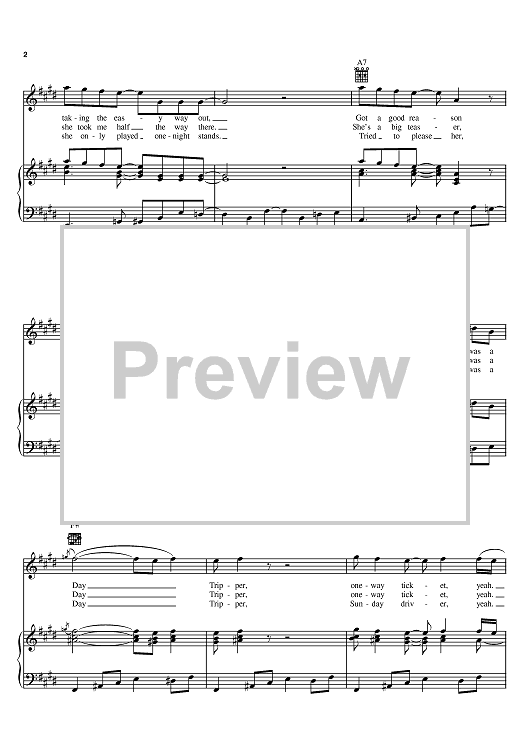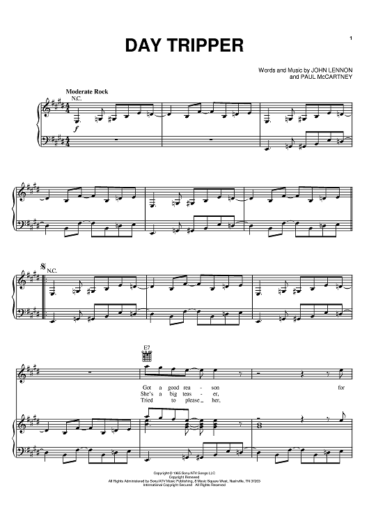 Digital Sheet Music for Day Tripper by Paul McCartney, The Beatles, John Lennon scored for Piano/Vocal/Chords; id:372379