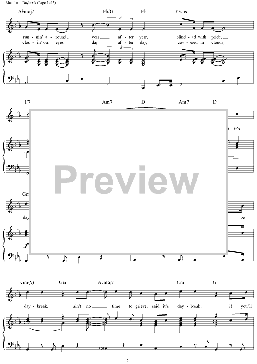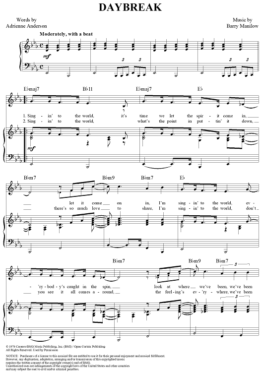 Digital Sheet Music for Daybreak by Barry Manilow, Adrienne Anderson scored for Piano/Vocal/Chords; id:321055