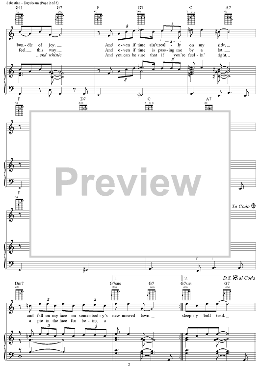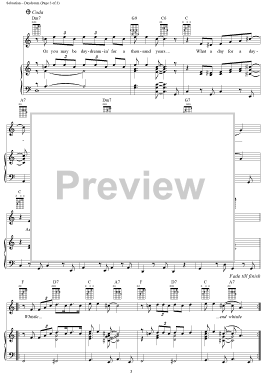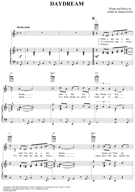 Digital Sheet Music for Daydream by John Sebastian, The Lovin' Spoonful scored for Piano/Vocal/Chords; id:365252