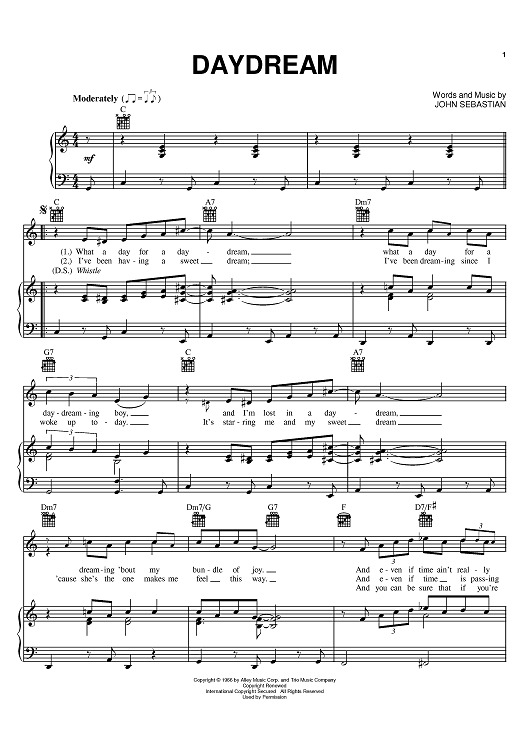 Digital Sheet Music for Daydream by John Sebastian, The Lovin' Spoonful scored for Piano/Vocal/Chords; id:383769