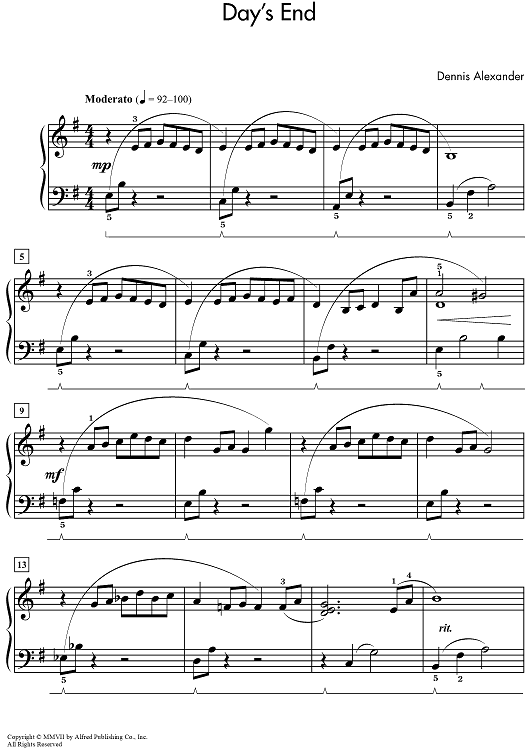 Digital Sheet Music for Day's End by Dennis Alexander scored for Piano Solo; id:469095