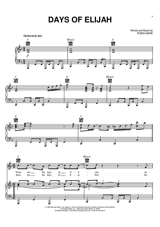 Digital Sheet Music for Days Of Elijah by Robin Mark scored for Piano/Vocal/Chords; id:386813