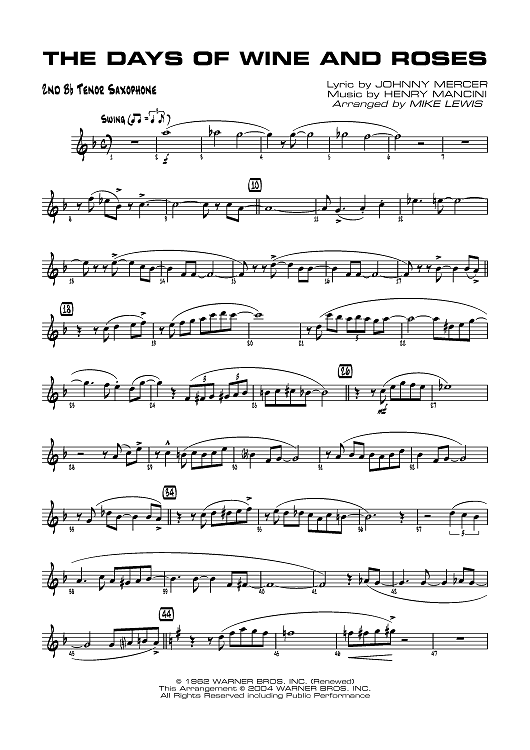 "Days of Wine and Roses - B-flat Tenor Saxophone 2" Sheet Music by Henry Mancini
