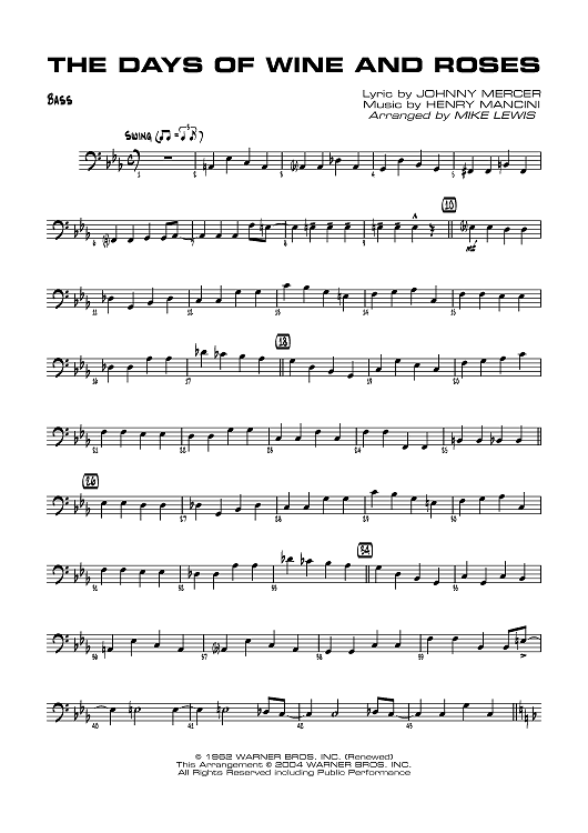 "Days of Wine and Roses - Bass" Sheet Music by Henry Mancini