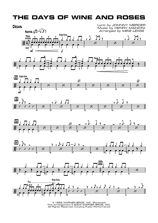 "Days of Wine and Roses - Drums" Sheet Music by Henry Mancini