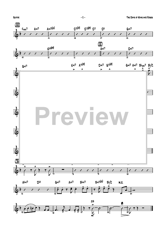 Digital Sheet Music for Days of Wine and Roses - Guitar by Henry Mancini, Johnny Mercer, Mike Lewis scored for Jazz Ensemble; id:358798