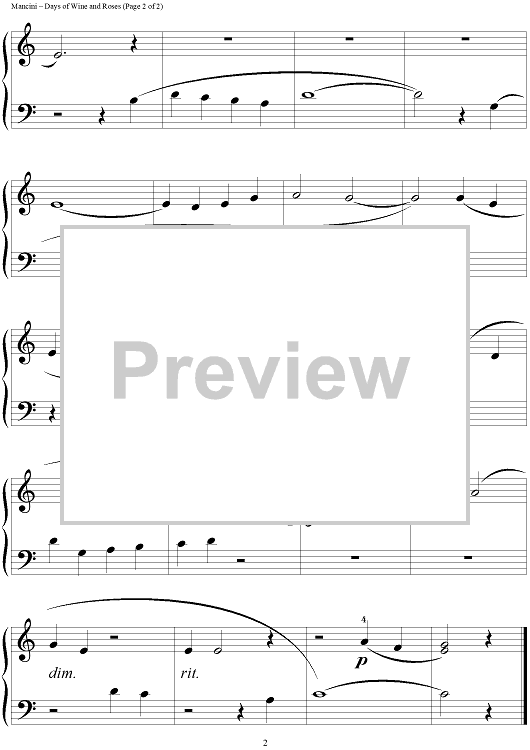 "Days of Wine and Roses" Sheet Music by Henry Mancini