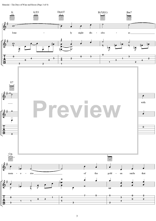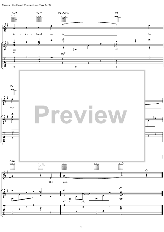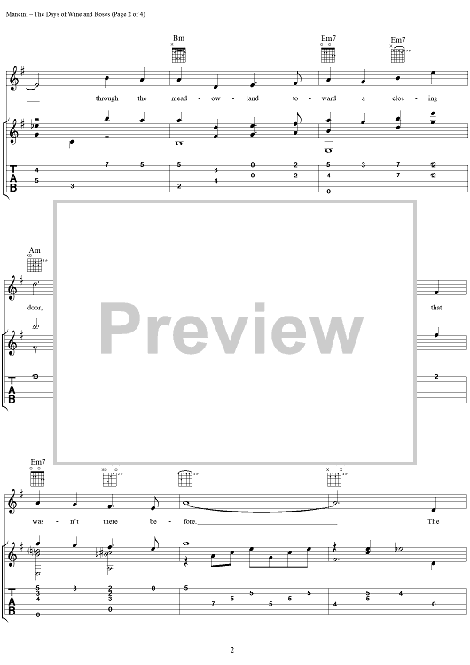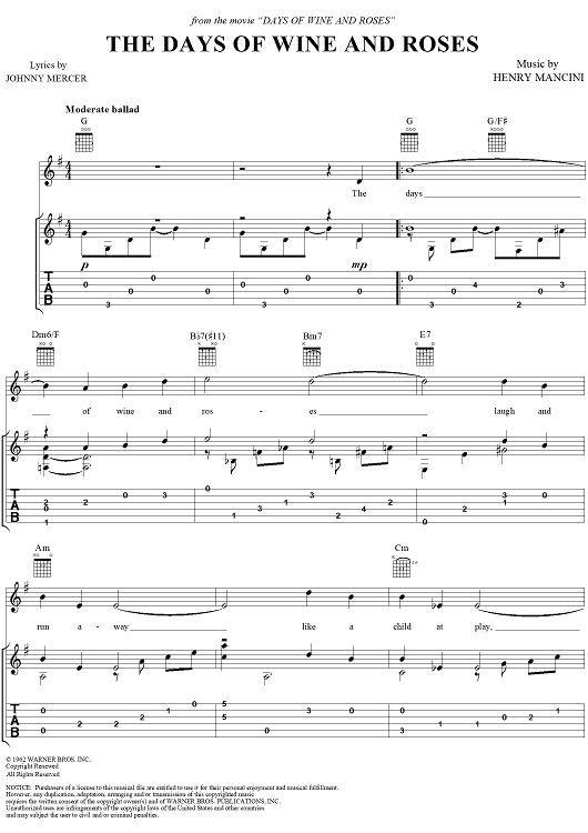 Digital Sheet Music for Days of Wine and Roses by Henry Mancini, Johnny Mercer, Gregory Coleman scored for Guitar Tab/Vocal; id:251184