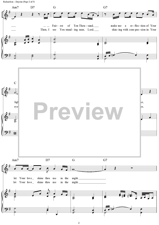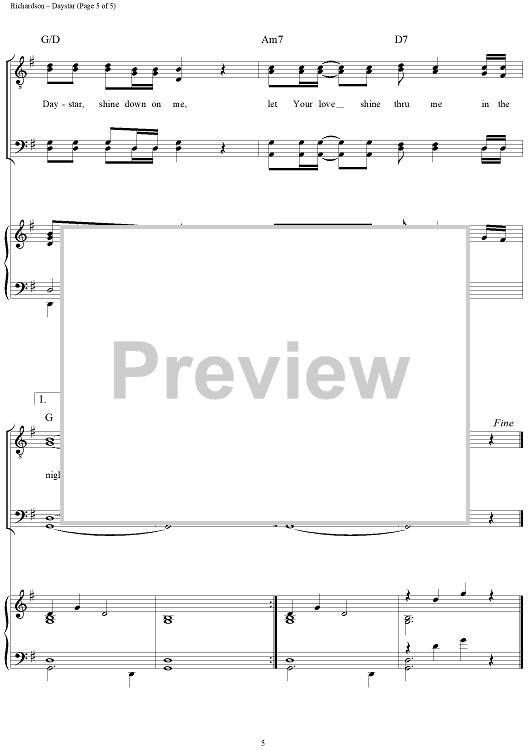 Digital Sheet Music for Daystar (Shine Down On Me) by Steve Richardson, Gaither Vocal Band scored for Piano/Vocal/Chords; id:255650