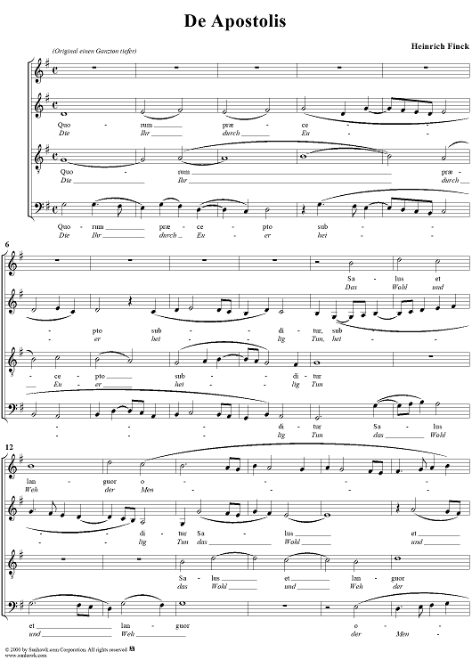 Digital Sheet Music for De Apostolis by Heinrich Finck scored for Four-part Mixed Chorus; id:266845
