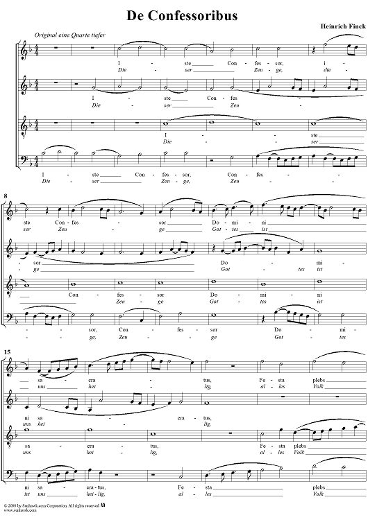 Digital Sheet Music for De Confessoribus by Heinrich Finck scored for Four-part Mixed Chorus; id:266850